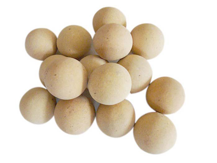 耐火球是以工業氧化鋁和耐火高嶺土為主要原料,經過科學配方、成型和高溫煅燒而成。耐火球具有以下優點:1。機械強度高;2.使用壽命長;3.耐高溫性能好,高耐熱溫度可達1900℃。本產品適用于化肥廠高低溫轉換器、轉換器、氫轉換器、脫硫槽和甲烷轉換器,起到分散氣液、支撐、覆蓋和保護催化劑的作用。也可用于鋼鐵工業的熱風爐和加熱轉換設備。