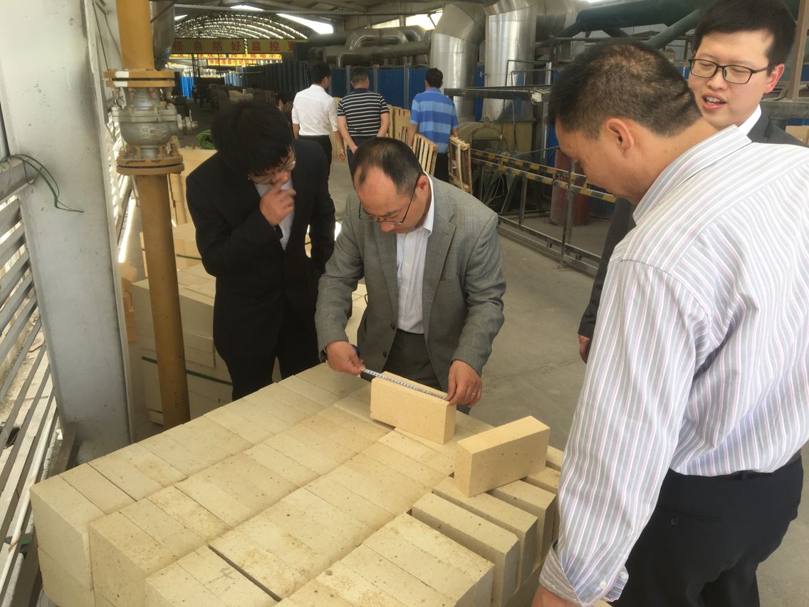 考察團檢測榮盛耐材生產(chǎn)的鎂鉻磚