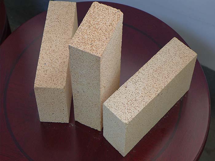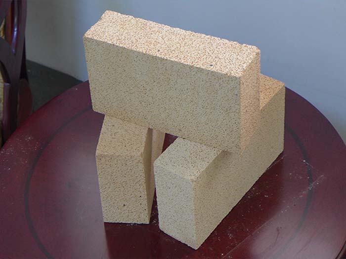 氧化鋁含量在48%以上、主要由莫來石和玻璃相或剛玉共同組成的輕質耐火材料。體積密度0.4~1.35g/cm3。氣孔率66%~73%,耐壓強度1~8MPa。抗熱震性能較好。通常采用高鋁礬土熟料加少量黏土,經磨細后用氣體發生法或泡沫法以泥漿形式澆注、成形,經1300~1500℃燒成。有時也可用工業氧化鋁代替部分礬土熟料。用于砌筑窯爐的內襯和隔熱層,以及無強烈高溫熔融物料侵蝕及沖刷作用的部位。直接與火焰接觸時,表面接觸溫度不得高于1350℃。
